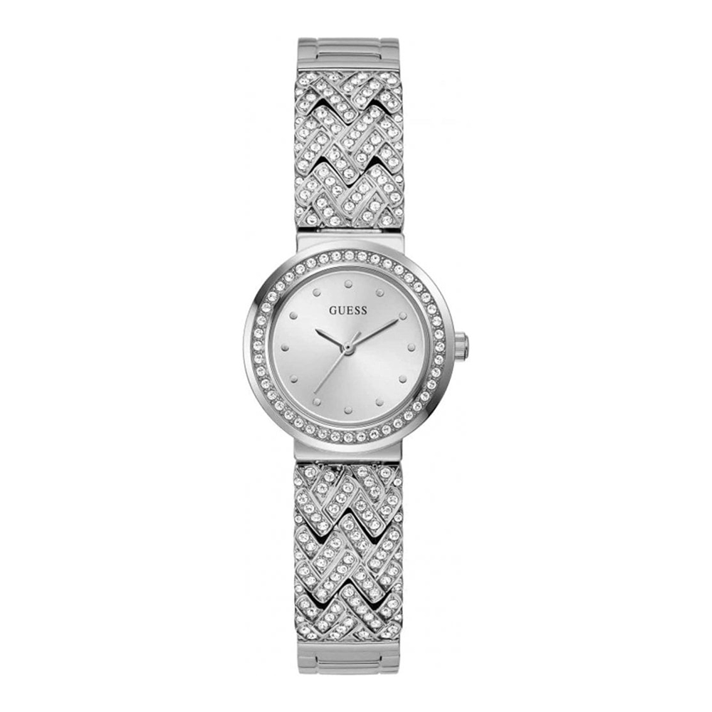 <p><strong>Guess Treasure Damenuhr GW0476L1</strong></p> <ul> <li>Edelstahlgehäuse, silberfarbene Beschichtung, poliert</li> <li>Edelstahlarmband, silberfarbene Beschichtung, poliert, mit Klippverschluß</li> <li>Quarzuhrwerk, Batteriebetrieben</li> <li>Water Resistant</li> <li>Gehäuse und Armband mit Steinen besetzt</li> <li>Zifferblattfarbe Silber</li> <li>Gehäusebreite ca. 29 mm</li> <li>Gehäusehöhe ca. 7 mm</li> </ul> <p>Lieferung mit Box und Informationskarte. Aus Umweltschutzgründen sind Bedienungsanleitungen und weitere Informationen nur noch auf der Internetseite des Herstellers abrufbar!</p>